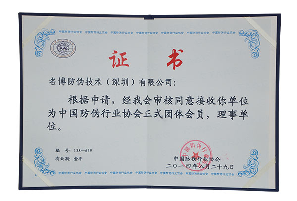 名博防偽技術(shù)(深圳)有限公司于1993年成立,是亞太防偽協(xié)會(huì)會(huì)員、中國(guó)防偽協(xié)會(huì)理事單位。公司集研發(fā)、生產(chǎn)、銷(xiāo)售為一體,專(zhuān)業(yè)提供各種防偽油墨、防偽材料、防偽制品,是中國(guó)知名防偽產(chǎn)品制造商之一。